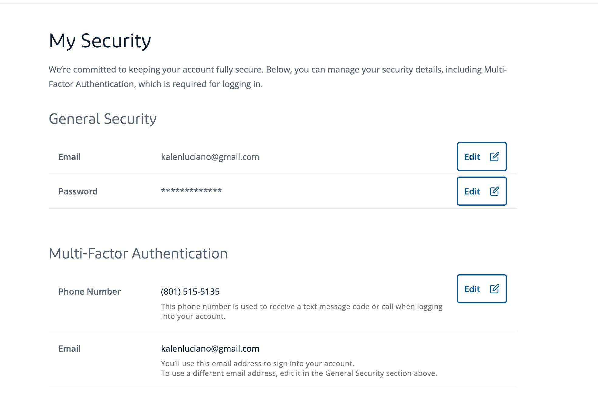 The only change in the customer’s portal is that the Phone Number MFA factor has changed from their phone number to Bayou’s phone number: